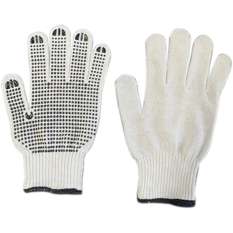 Knitted Poly Cotton Gloves With PVC Dots – 12 Pairs