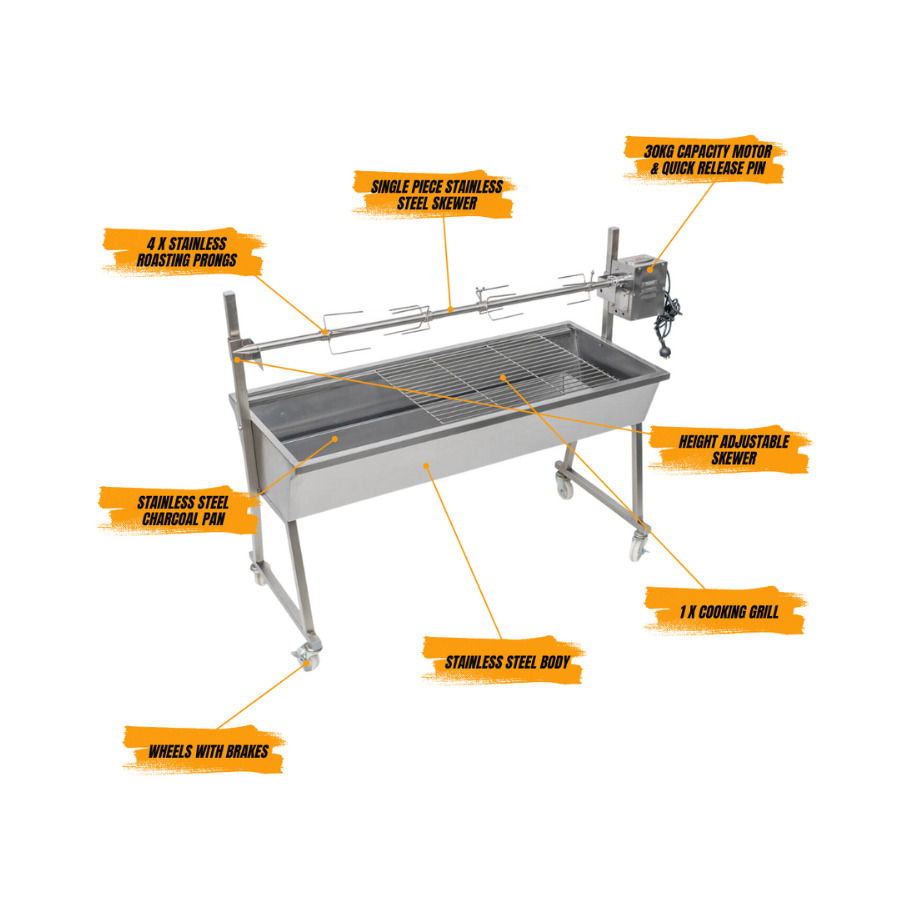 Flaming Coals Master SS Spit Roaster 1200mm – 30kg