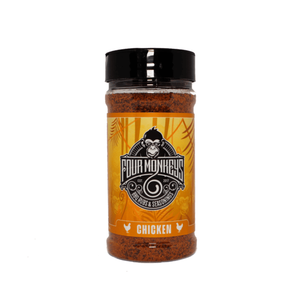 Four Monkeys BBQ Chicken Rub offers a perfectly balanced combination of salty sweetness enhanced with delicious herb undertones and a nice hit of back end heat.