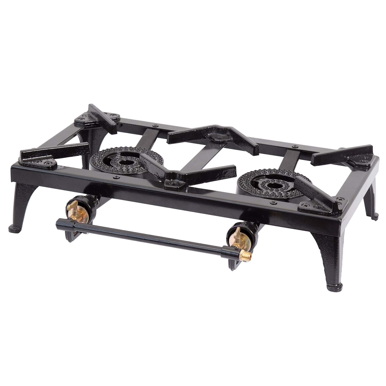 The Gasmate Double Burner Country Cooker is ideal for your next camping adventure with its sturdy and durable cast iron frame. Easy to use fine controls and powerful high heat output makes for effortless cooking. The Cast Iron Double Burner Country Cooker comes complete with hose and regulator.