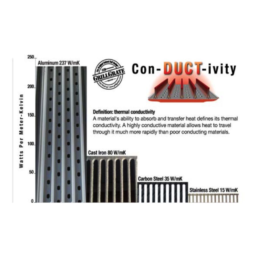 Made from hard anodised aluminium, GrillGrates amplify heat, prevent flare-ups, conducts heat more efficiently, retains moisture and sears your food.