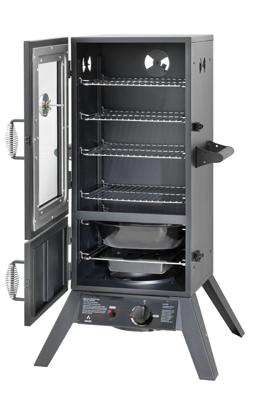 The Hark 2 Door Gas smoker is a vertical smoker that is powered by a standard LPG gas bottle. Low and slow smoked food is currently enjoying a popular resurgence and smoking with gas is proving to be both easy and efficient.
