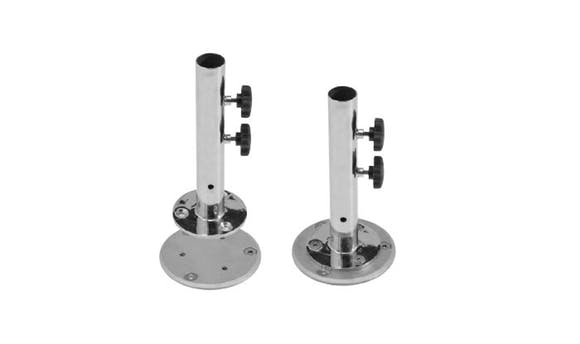 200mm Round Plate with a Stainless Steel 316 finish with a removable spigot. This enables your umbrella to be mounted to concrete or decking.