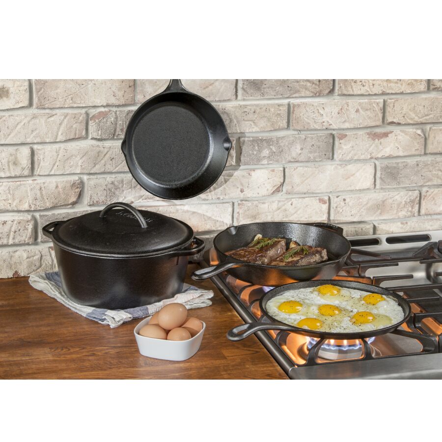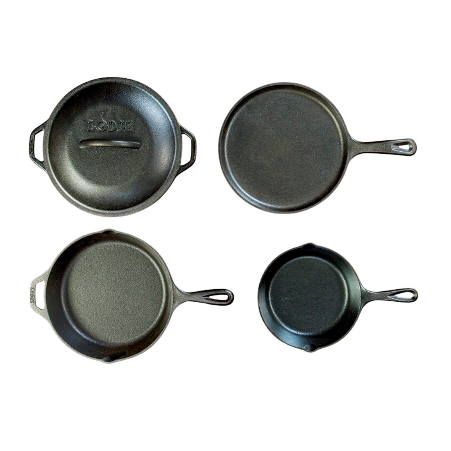 • Set Includes | 10.5in Griddle. 8in Skillet, 10.25inch Skillet and 10.25in Dutch Oven with cover