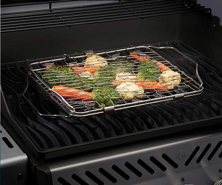 Perfect for a multitude of different dishes, the Napoleon Flexible Grill Basket cradles food gently between two hinged sides for effortless grilling. Ideal for fish, vegetables, and perfectly grilled sandwiches, this accessory makes handling multiple, delicate foods easy. Integrated handles mean that moving, flipping, and adjusting meals on your grill is super simple. Not only does the durable stainless steel of the Napoleon Flexible Grill Basket heat evenly, but it’s also easy to clean; just throw it in the dishwasher so it’s ready for your next grilled creation. Meals using the Napoleon Flexible Grill Basket are only limited by your creativity.