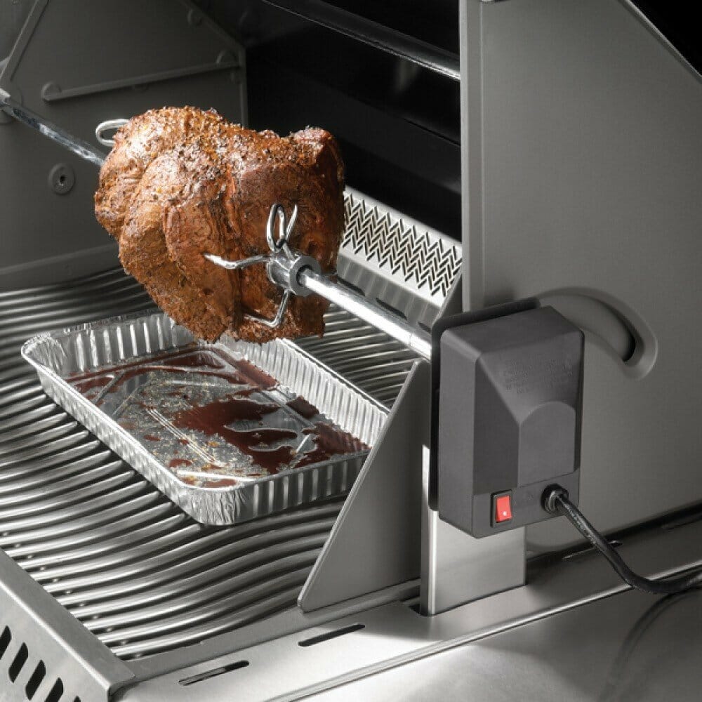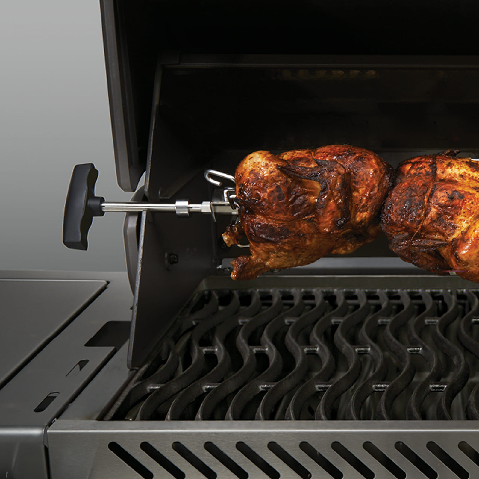 Rotisserie grilled meals are the best. They are succulent and juicy and a real crowd pleaser. Use the Napoleon Commercial Grade Rotisserie Kit for Large Grills to produce restaurant quality meals right in your back yard. The large commercial grade stainless steel hexagonal spit rod with commercial grade motor is up for any task you throw at them. The 4 prong commercial meat forks hold your food in place with easy-to-use thumbscrews. And there is even a counterweight assembly, just in case you’re cooking for an army. Specifically fits all PRO 500, P500, and LEX 485 series Napoleon grills. Also fits grill hoods up to 31 inches in width.