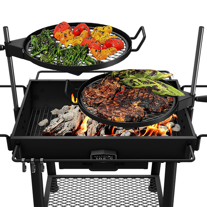 Fire up your taste buds for flame-grilled BBQ from the Oklahoma Joe’s® Firecraft Series™ Barrel Grill, the grill that takes over-the-fire cooking to new heights. With this innovative grill, you can sear a juicy steak over open flames while cooking veggies elevated above the fire for primal flavour you just can’t fake. So, gather your family and friends together to grill a delicious meal over an open fire, roast marshmallows and enjoy cozy conversation in the warm glow of the embers. As you continue to elevate your skills and master the fire, you can expand your options with our Firecraft Series™ Accessories.