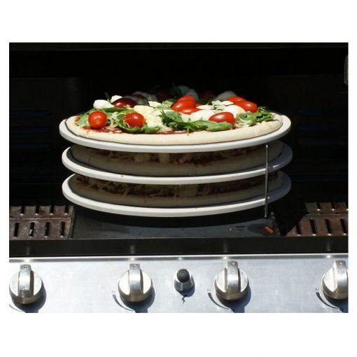 This Pizza Rack allows you to cook up to 3 pizzas at once.