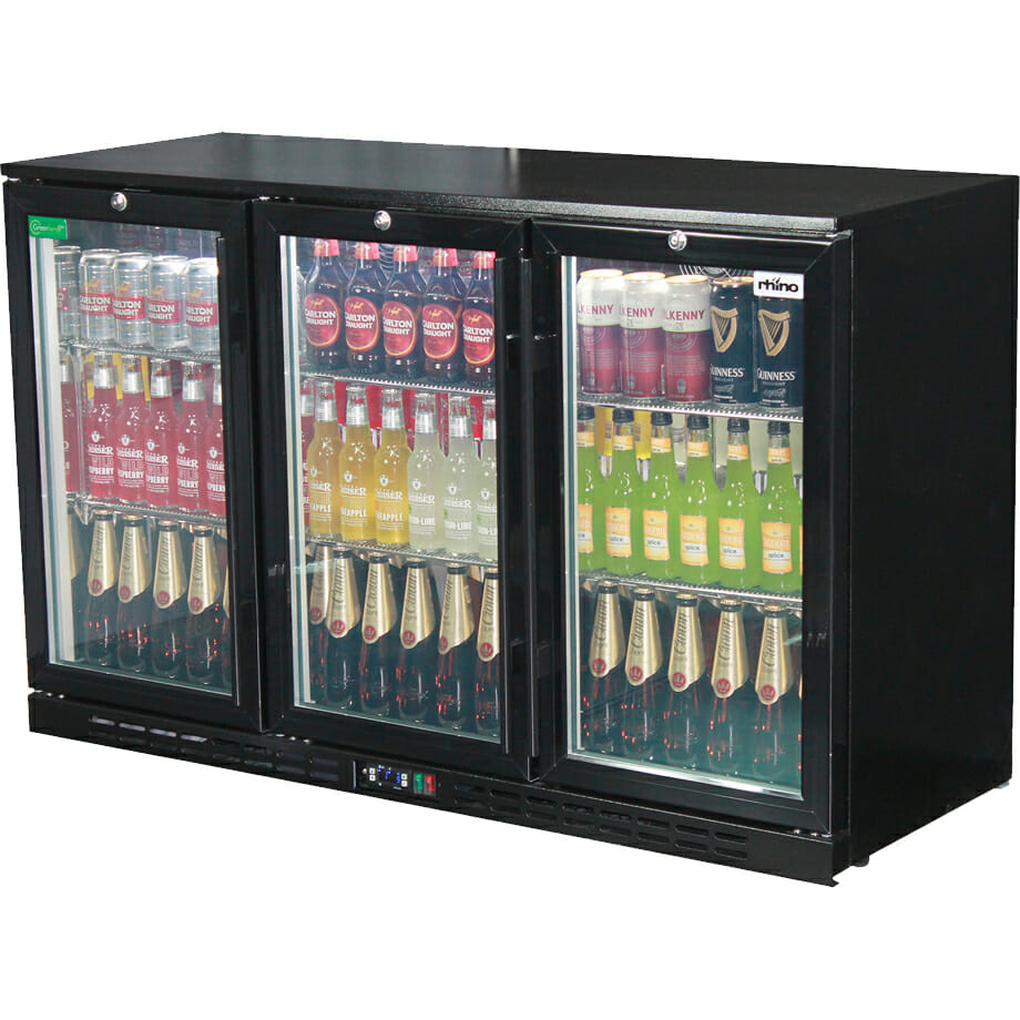 Rhino – SG3H-B-HD – Black Heated Glass 3 Door Bar Fridge
