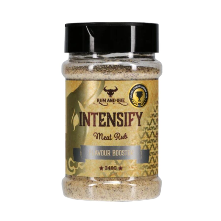 Intensify – This is designed to elevate your grilling and cooking experience! This all-purpose BBQ rub is perfect for every kind of food, making it an essential seasoning for both meat lovers and vegetarians alike. Simply apply Intensify before or after cooking to enhance and intensify the natural flavours of your dishes. Whether you’re grilling juicy steaks, roasting vegetables, or preparing seafood, this versatile rub serves as an excellent base or topcoat. Discover the perfect balance of flavour and versatility with Intensify, the must-have BBQ rub that will transform your meals into culinary masterpieces. Elevate your cooking game and impress your guests with the incredible taste of Intensify from Rum and Que!