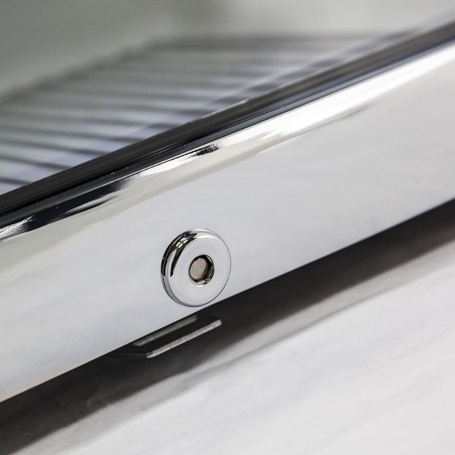 The Schmick HUS-SC50W is a tropical rated glass door mini bar fridge. Solidly built and compact enough to fit into a variety of spaces, this fridge includes chromed shelves, chrome door trims, reversible door and lock with a brilliant finish.