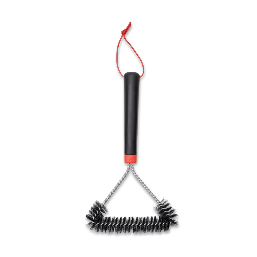 This three-sided grill brush is made to remove grease and debris from cooking grates of all sizes. The handle design provides a secure grip when brushing off stuck-on food or cleaning tight spaces. Use this grill brush to clean your grates before each use so that your grill lasts longer and your next meal is as delicious as the one before.