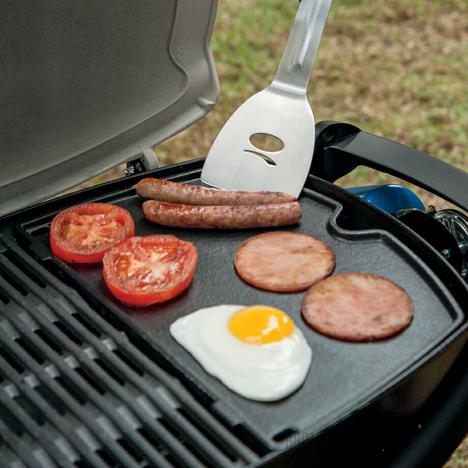 The hotplate’s double sided surface allows you to barbecue delicate food that may otherwise seem impossible. Whether you’re filling the garden with the smell of crispy bacon in the morning or barbecuing a seafood feast at night – make anytime your time to barbecue.