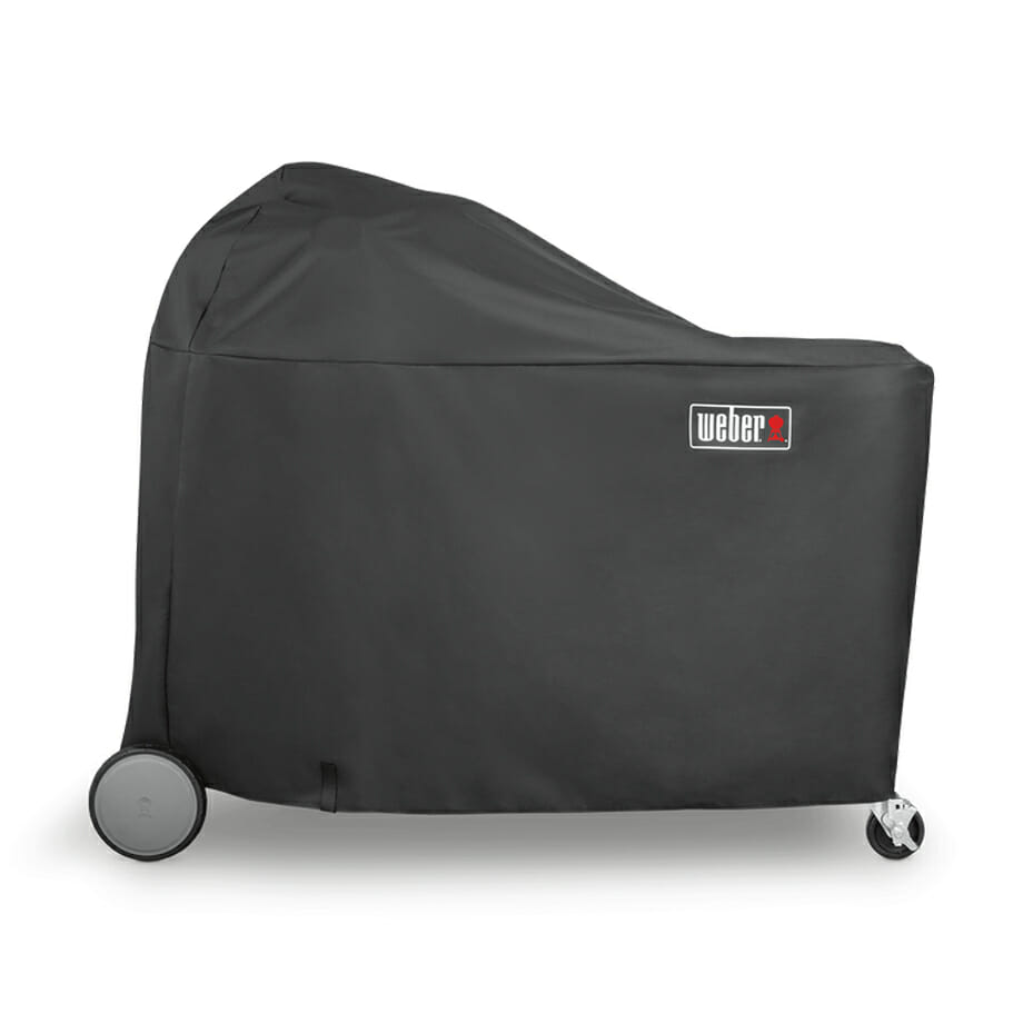 Product Description: Embrace the pouring rain and scorching sun. The lightweight yet durable Premium Charcoal Summit Cover makes it easy to pull on and off your grill. Its fastening straps keep it from blowing into your neighbor’s yard, and water-resistant material helps maintain a clean, sleek surface.