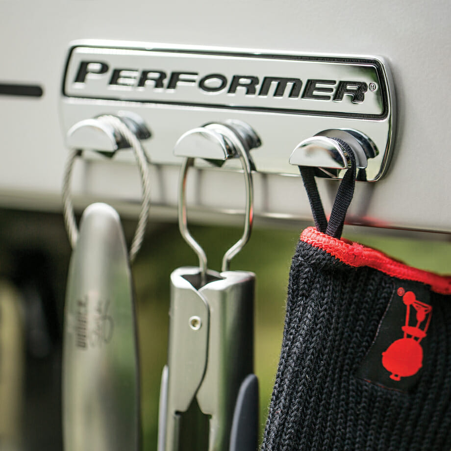 The Performer Premium also features a Tuck-Away lid holder that allows the lid to slide back and out of the way when accessing your food and to act also as a wind breaker. And, with the removable digital cooking timer, you can take the guesswork out of timing those magnificent Weber roasts.