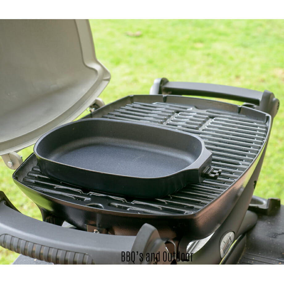 Now you really can cook everything outside on your Weber Q. The small frying pan allows you to cook omelettes, schnitzels, potato bakes, desserts and more! The Platinum Teflon coated surface is easy to clean and the detachable handle makes it easy to take the pan on and off your Weber Q.