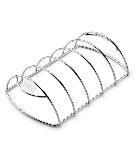 Product Description: The Weber Rib Rack features heavy gauge, nickel plated steel rib rack allows you to stand ribs, chops and chicken pieces in an upright position. Creates up to 50% more usable cooking area. Turn it upside down to create a roast holder that makes it easy to lift roasts on and off the barbecue.