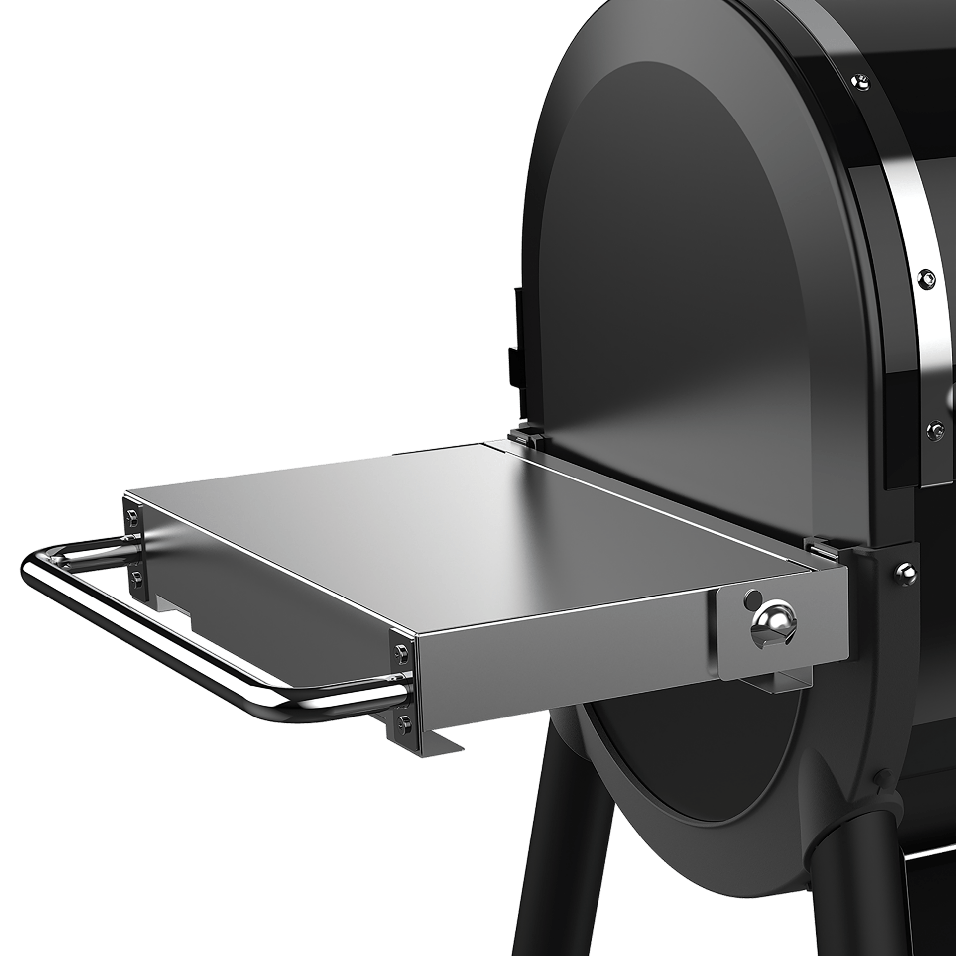 Prep, serve, and keep grilling tools within reach with the SmokeFire stainless steel folding side table. The side table adds over 200 square inches of work space, complete with a built-in bottle opener.