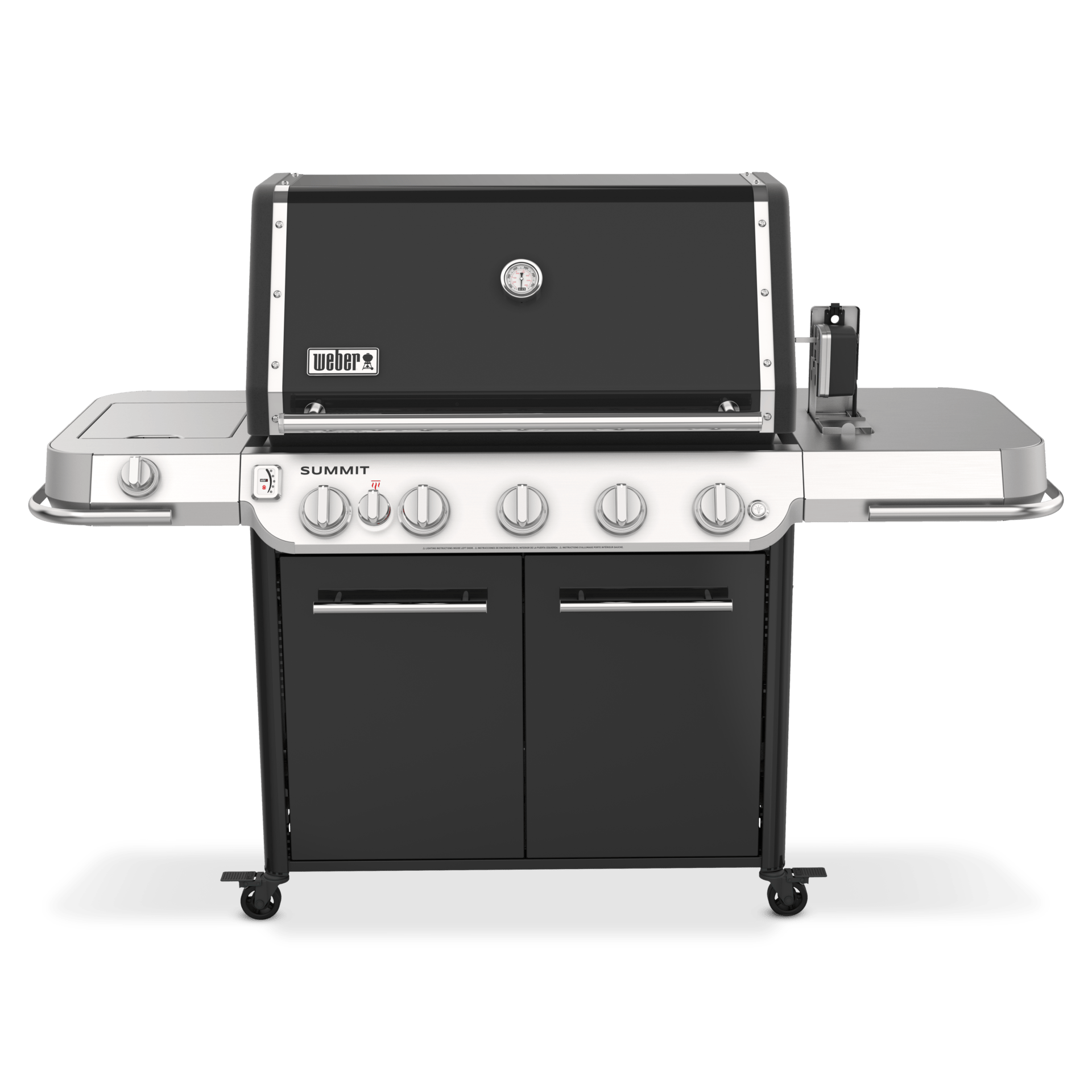 Step up to the Summit – our top-of-the-line gas barbecue, reinvented with features that expand your outdoor cooking techniques and enable you to entertain at a higher level. The top-down, high-heat infrared burner directs blazing heat onto the top of food, producing an edge-to-edge caramelised crust that seals in flavor. Light up the stainless-steel smoker box to give your food a low-and-slow, smoky boost and break out of your routine with an integrated rotisserie. This 5 burner BBQ is equipped with the WEBER CRAFTED cooking grates and frame kit that lets you transform your grill into a griddle, pizza oven, wok, and more with a variety of custom-fit accessories (sold separate). Bring the kitchen outside and create delicious food that makes every gathering memorable.