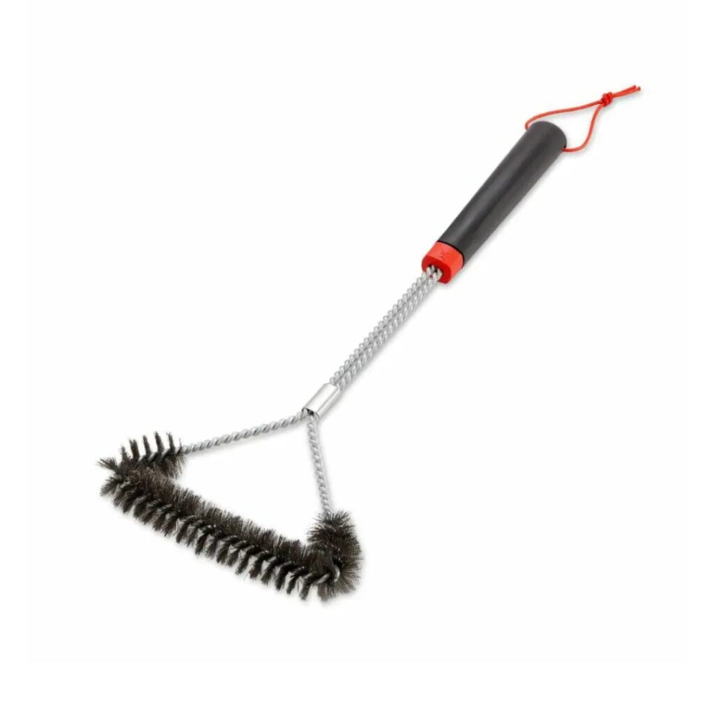 This three-sided grill brush is made to remove grease and debris from cooking grates of all sizes. The handle design provides a secure grip when brushing off stuck-on food or cleaning tight spaces. Use this grill brush to clean your grates before each use so that your grill lasts longer and your next meal is as delicious as the one before.